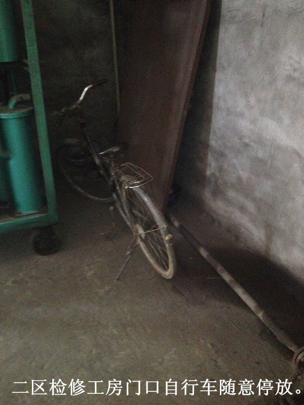 1.二區(qū)檢修工房門口自行車隨意亂放;