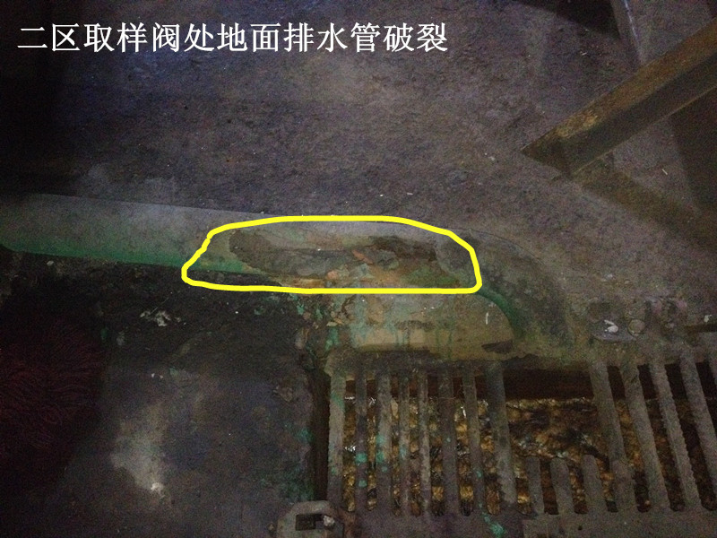 7.二區(qū)取樣處排水管破裂;