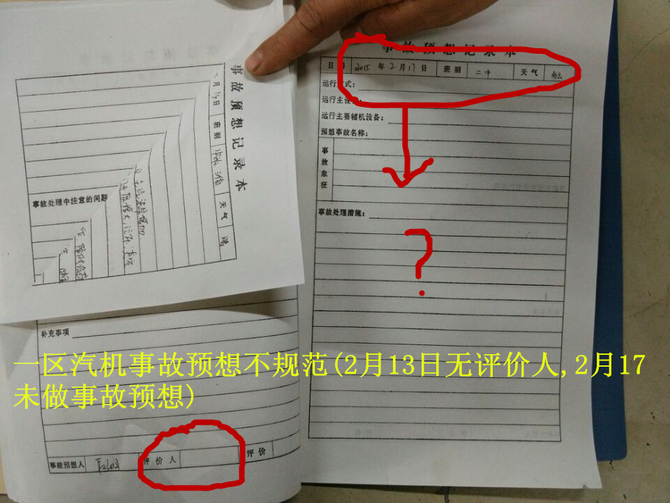 3.汽機(jī)事故預(yù)想不規(guī)范(2月13日無評(píng)論人簽名,2月17日未做事故預(yù)想);