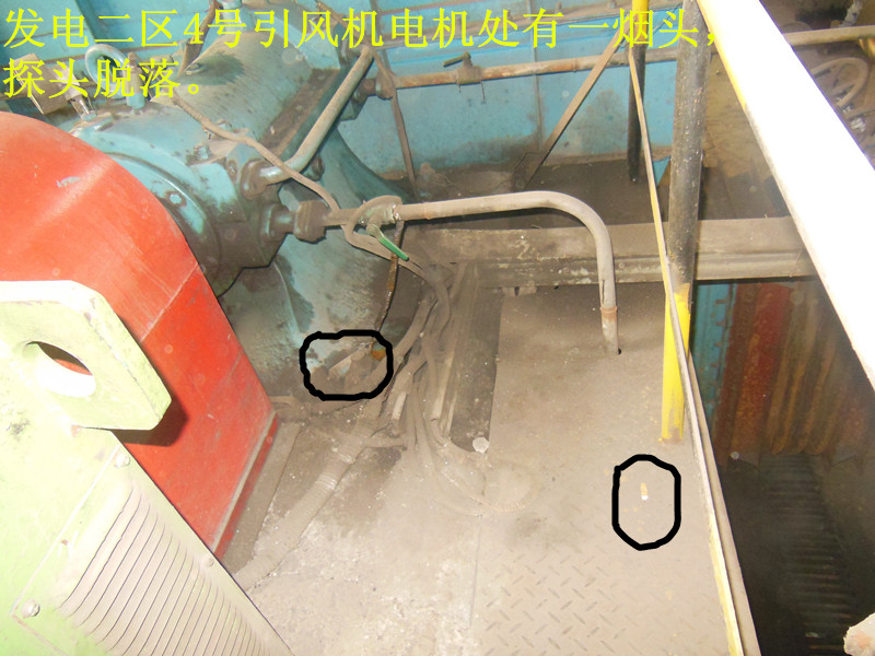 1、 發(fā)電二區(qū)4#引風(fēng)機(jī)平臺(tái)處有一煙頭且探頭脫落;