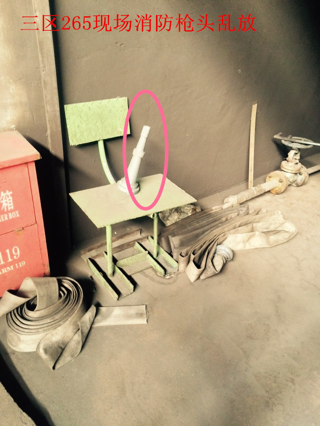 2、三區(qū)265現(xiàn)場消防槍頭亂放;