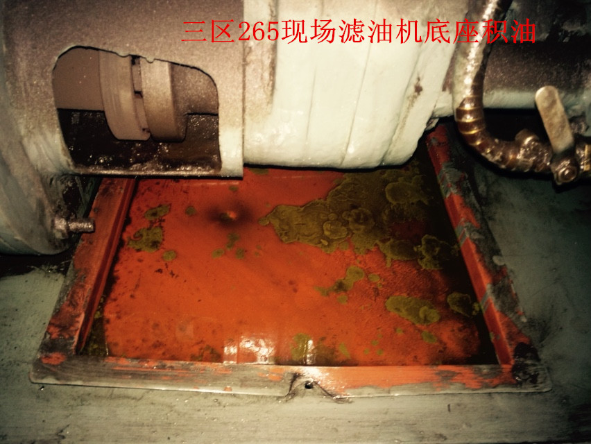 3、三區(qū)265現(xiàn)場濾油機(jī)底座積油;