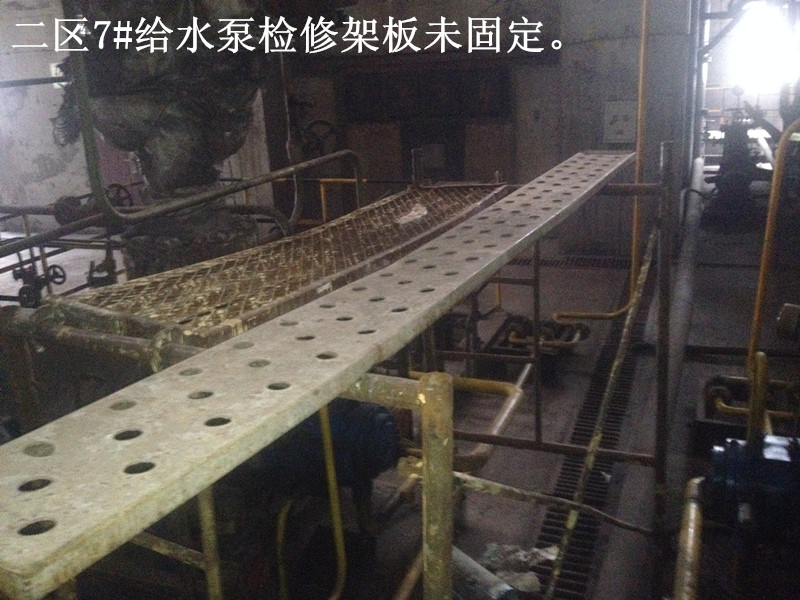 1、發(fā)電二區(qū)7#給水泵檢修架板未固定;