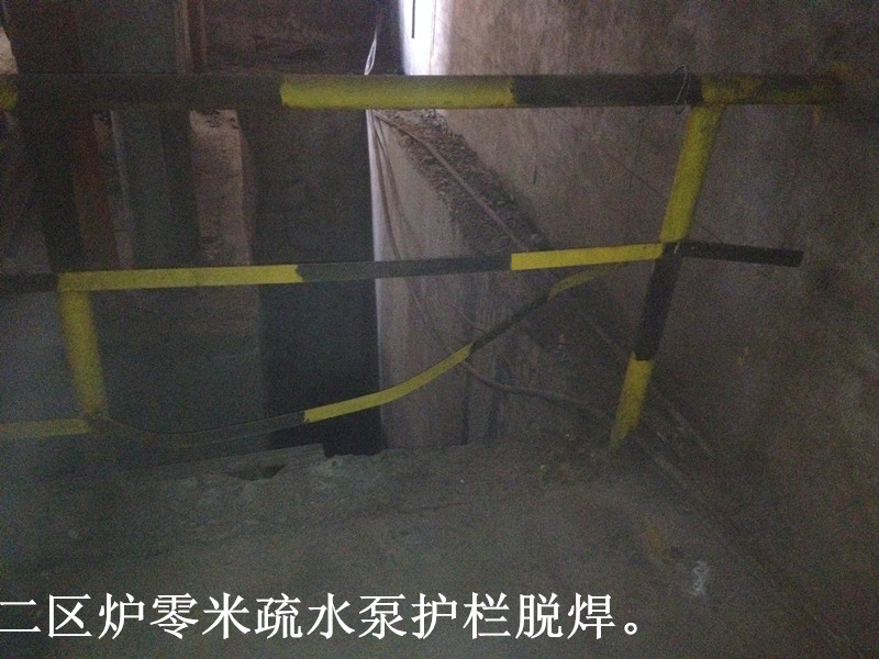 12、發(fā)電二區(qū)爐零米疏水泵護(hù)欄脫焊;