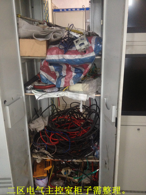 15、發(fā)電二區(qū)電氣主控室柜子里面雜物需清理;