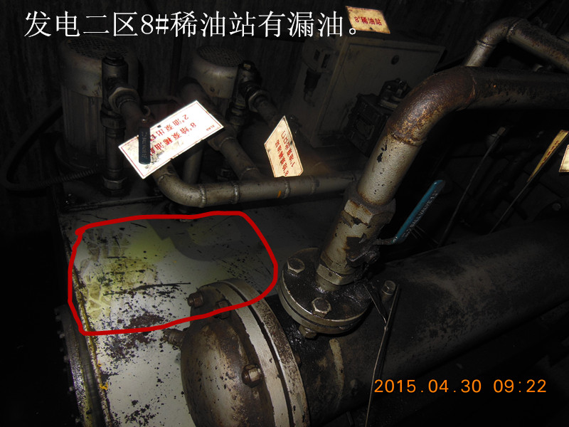 1、發(fā)電二區(qū)8#稀油站有漏油。