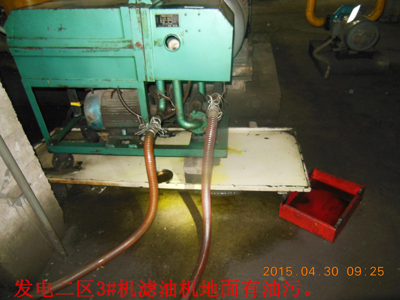 2、發(fā)電二區(qū)3#機(jī)濾油機(jī)地面有油污。