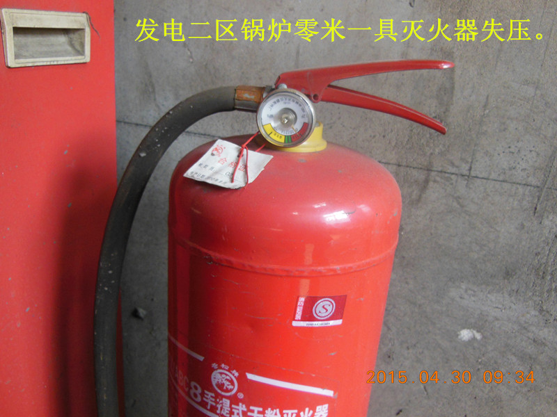 6、發(fā)電二區(qū)鍋爐零米一具滅火器失壓。