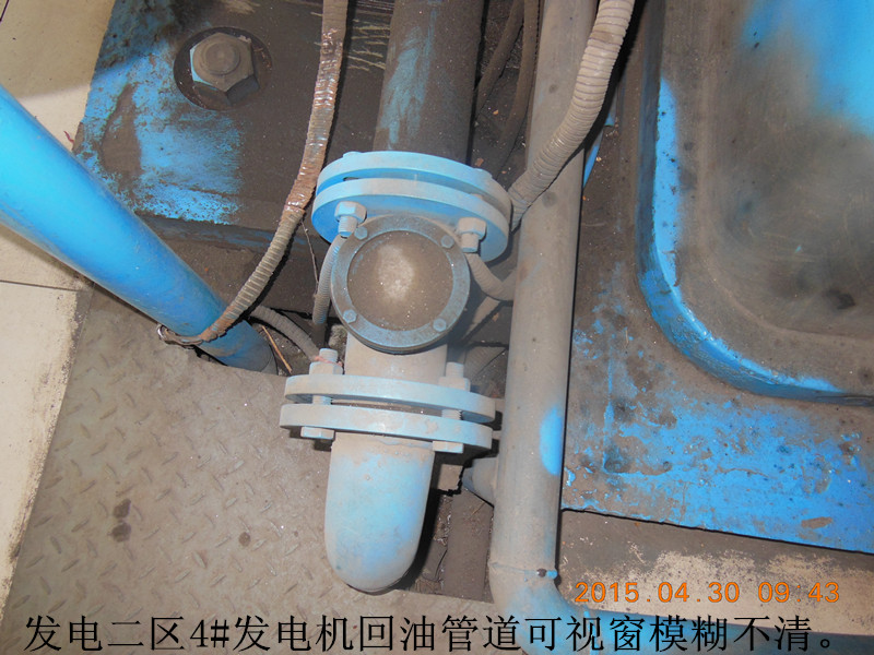 7、發(fā)電二區(qū)4#發(fā)電機(jī)回油管道可視窗模糊不清。