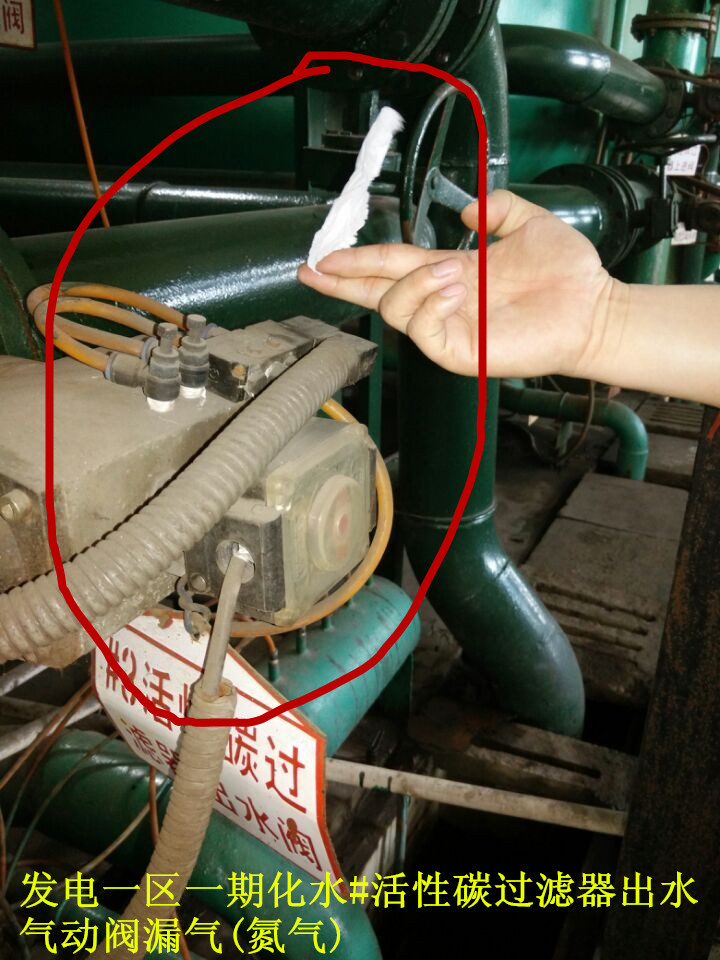 12、發(fā)電一區(qū)一期化水活性炭過濾器出水氣動閥漏氣;