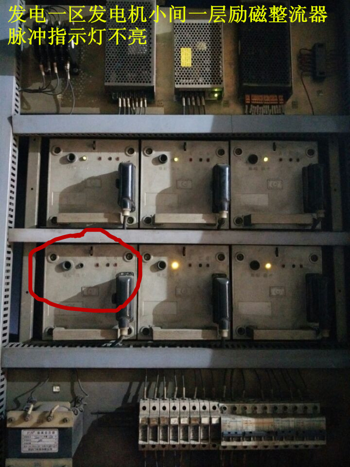 7、發(fā)電一區(qū)發(fā)電機(jī)小間一層勵磁整流器脈沖指示燈不亮;