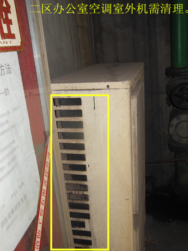 1、 二區(qū)辦公室空調(diào)室外機(jī)臟;