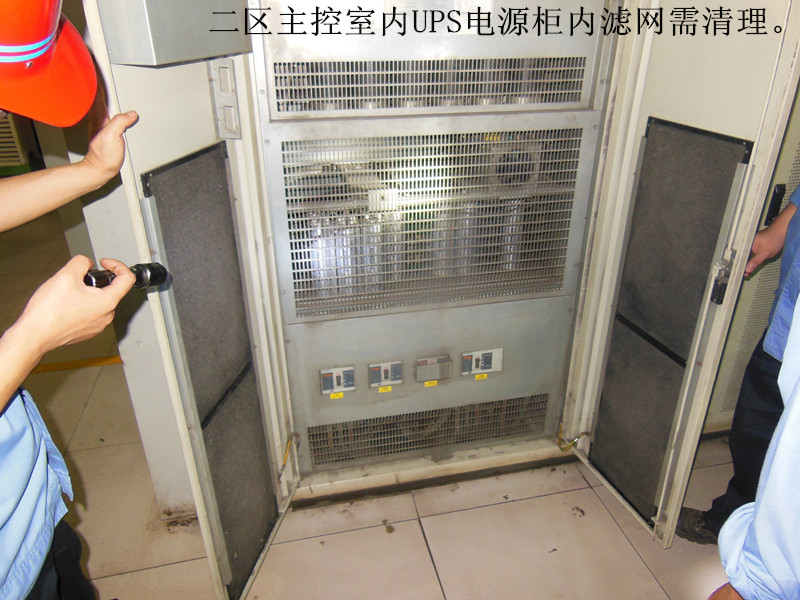 8、 二區(qū)集控室UPS電源內(nèi)部濾網(wǎng)臟,需清理;