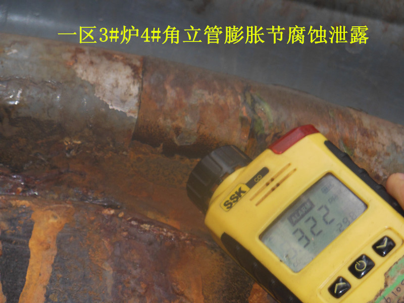 1、一區(qū)3#爐3#角立管膨脹節(jié)腐蝕滲漏;