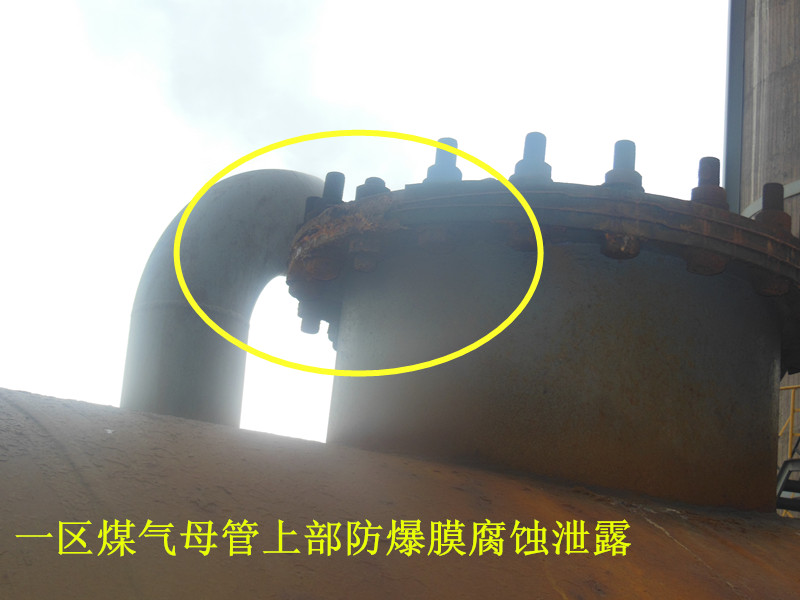 5、一區(qū)煤氣母管上部防爆膜腐蝕泄露;