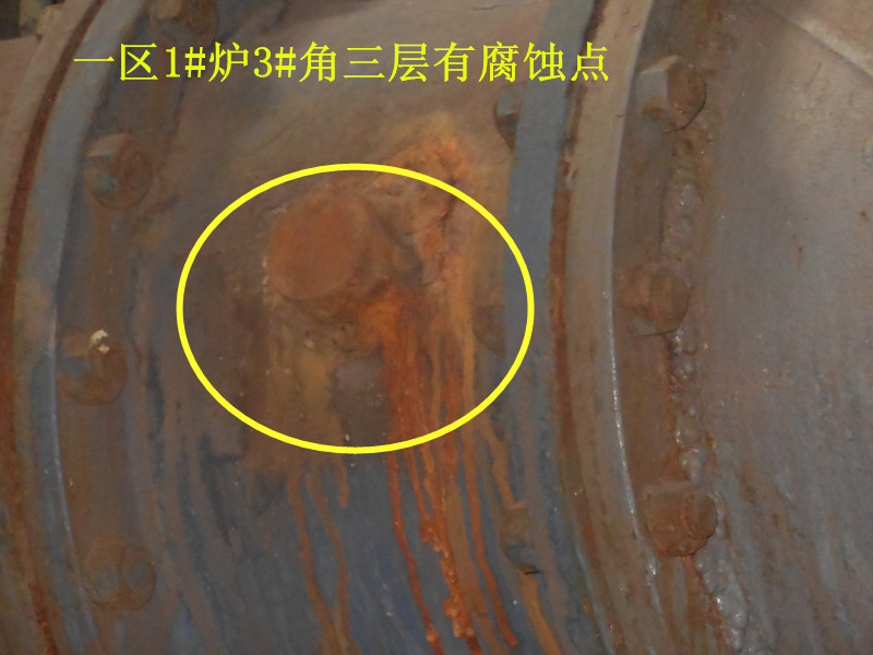 6、一區(qū)1#爐3#角三層有腐蝕點;