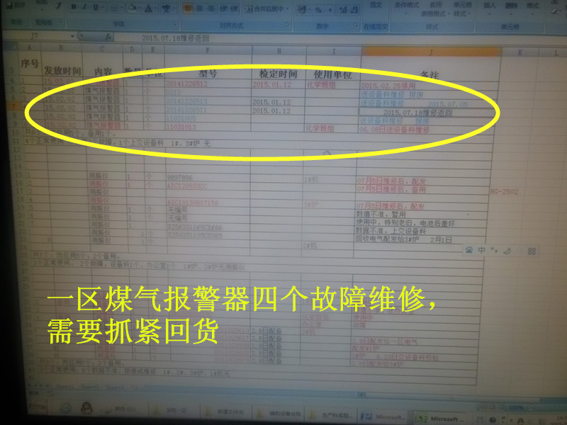 7、一區(qū)煤氣報警器四個故障維修,需盡快;