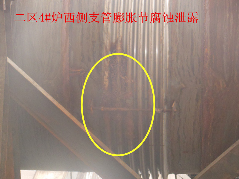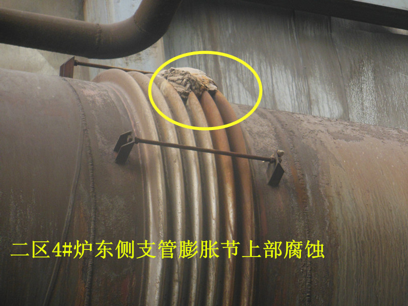 6、二區(qū)4#爐東側(cè)支管膨脹節(jié)上部腐蝕;