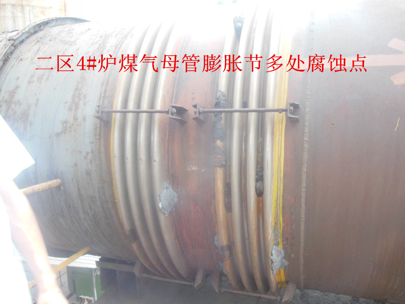 7、二區(qū)4#爐煤氣母管膨脹節(jié)多處腐蝕點;