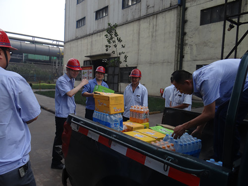 連日來(lái)高溫持續(xù)不下,公司領(lǐng)導(dǎo)牽掛生產(chǎn)一線的員工們。7月28日,公司總經(jīng)理石軍生,及各位副總、科長(zhǎng)等一行領(lǐng)導(dǎo)來(lái)到各作業(yè)區(qū),看望和慰問(wèn)了在高溫天氣下堅(jiān)守生產(chǎn)現(xiàn)場(chǎng)的一線員工們,將“清涼”親手送到員工手中,同時(shí)也帶來(lái)了公司黨政班子對(duì)基層生產(chǎn)一線員工的深切關(guān)懷和厚愛(ài)。