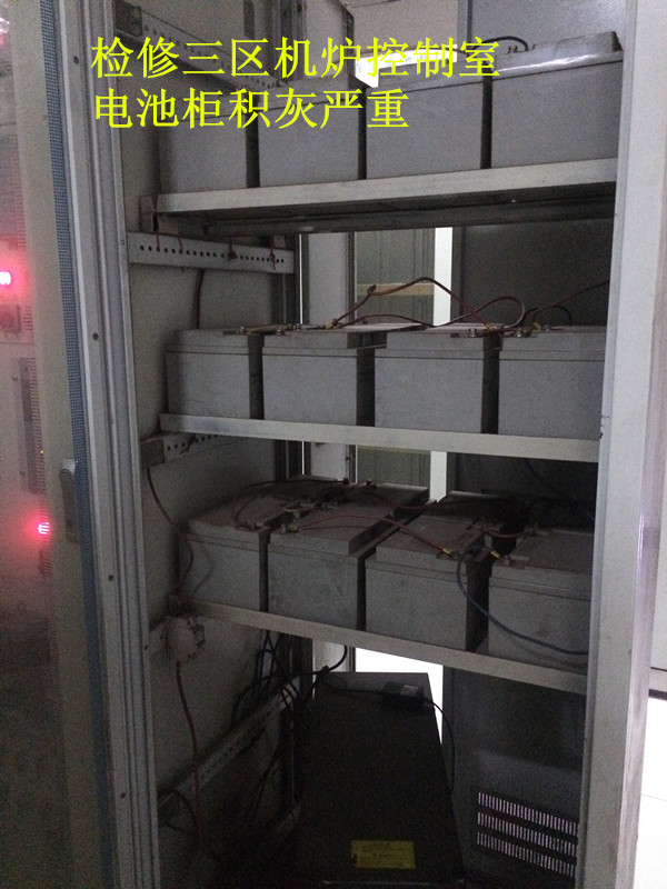 8. 檢修三區(qū)機爐控制室電池柜,積灰嚴重;