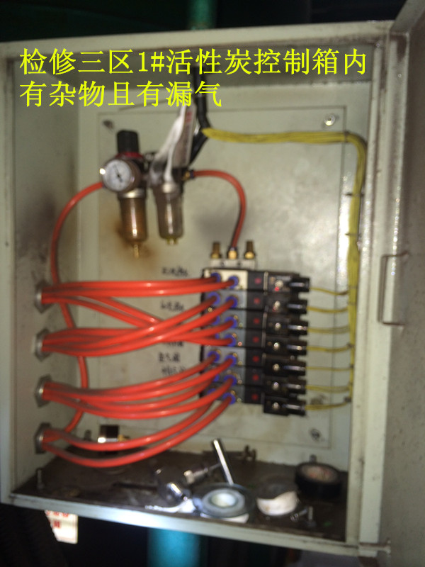 10.檢修三區(qū)1#活性炭控制箱內(nèi)有雜物且有漏氣;