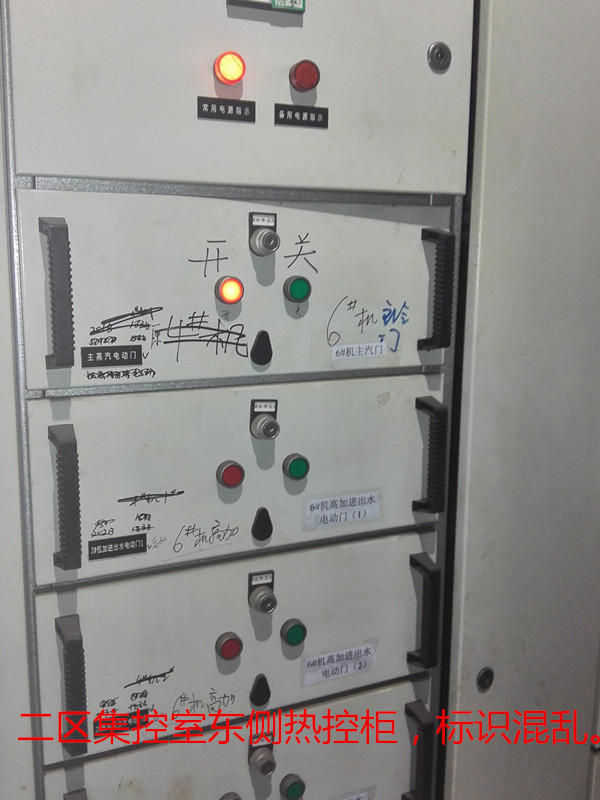 5. 發(fā)電二區(qū)3#、6#機熱控柜,標識需完善;