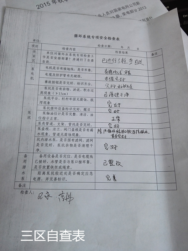 1、 作業(yè)區(qū)未組織內(nèi)部循環(huán)水系統(tǒng)自查;