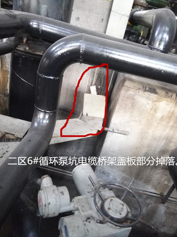 2、6#機循泵坑電纜橋架蓋板部分未蓋好;