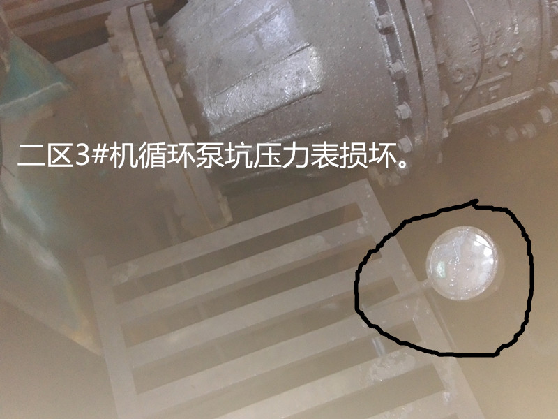4、二區(qū)3#機循環(huán)泵坑6#循環(huán)泵處,壓力表壞;