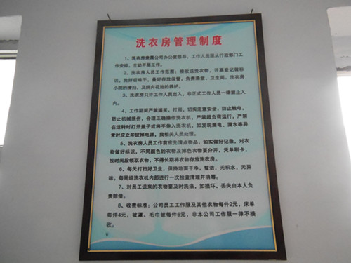 為確保職工洗衣房服務質量,減輕職工工作之余的內務勞動,切實提高工作效能,營造一個有利于促進公司發(fā)展的良好服務范圍。洗衣房從硬件著手,配置了2臺嶄新的小天鵝牌大功率全自動洗衣機,以及洗衣池、晾衣繩、儲物柜等配套設施。從軟件著手,定制了洗衣房管理制度,以便工作的正常運轉。華富每個員工一月可享受免費洗5身工作服的政策,此外的衣物清洗實行刷卡制,其價位方面非常優(yōu)惠,約為市場價的一半。并建立了意見薄,讓大家針對實際運行中,有什么意見和建議,進行反映,工作人員及時改進。