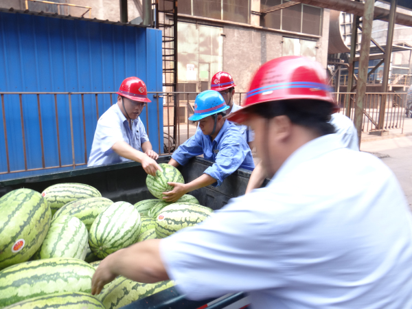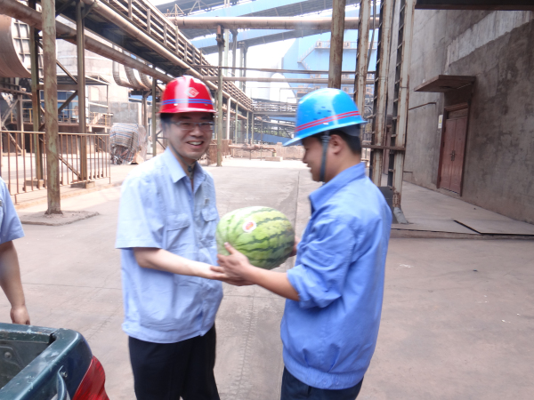 7月29日,公司總經(jīng)理石軍生、和各位副總、科長等一行,組成慰問團(tuán),深入一線,在炎炎夏日之時(shí),將“消暑之王”親手遞給員工,對(duì)在高溫天氣,堅(jiān)守現(xiàn)場(chǎng)的各位員工給予真摯地慰問。 抱著圓圓的大西瓜,工友們一個(gè)個(gè)臉上樂開了花。石總指出,企業(yè)生產(chǎn)責(zé)任重大,檢修任務(wù)重,時(shí)間緊,現(xiàn)場(chǎng)作業(yè)人員在高溫天氣下,一定要合理安排好施工時(shí)間,注意防暑降溫,做到勞逸結(jié)合,細(xì)化安全措施,加大現(xiàn)場(chǎng)安全監(jiān)督力度,在保證安全的前提下保質(zhì)完成設(shè)備檢修任務(wù)。 “烈日正當(dāng)頭 涼意遍心田”。慰問組送去的不只是清涼,還有滲入人心的暖暖情意。堅(jiān)守現(xiàn)場(chǎng)的人員也紛紛表示,我們會(huì)繼續(xù)發(fā)揚(yáng)戰(zhàn)高溫、抗酷暑的奮斗精神,立足崗位,圓滿完成各項(xiàng)工作任務(wù)。