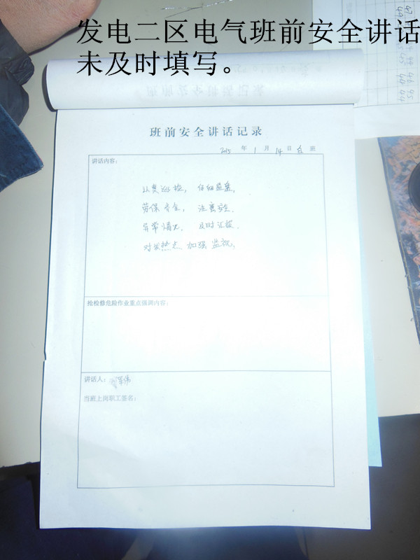 14.發(fā)電二區(qū)電氣班組班前安全講話未及時填寫;
