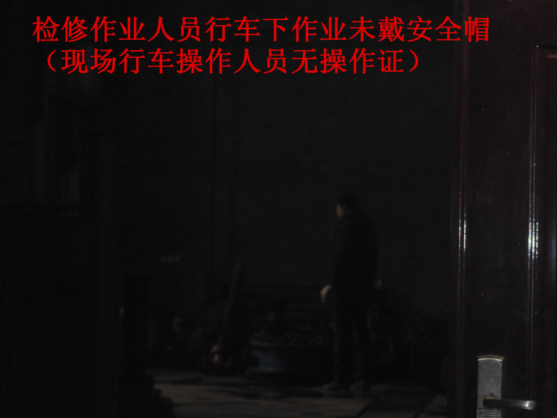 3.檢修作業(yè)區(qū)三區(qū)行車下作業(yè)人員未戴安全帽(現(xiàn)場行車操作人員無操作證);