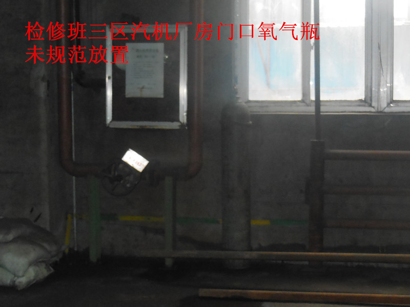 4.三區(qū)汽機廠房門口氧氣瓶未規(guī)范放置;