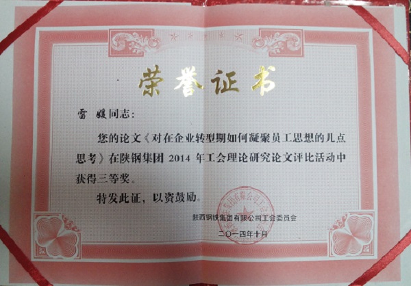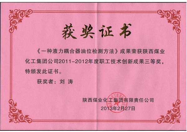 陜煤化職工技術(shù)創(chuàng)新成果三等獎(jiǎng)
