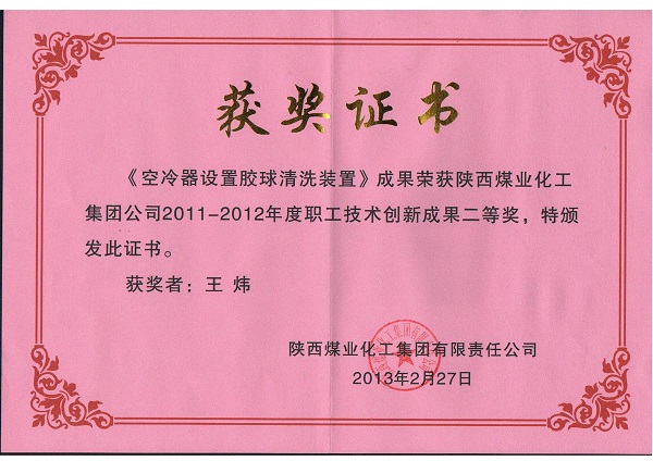 陜煤化職工技術(shù)創(chuàng)新成果二等獎